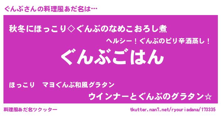 | 胡散臭い通販商品みたいなあだ名 | 『幸せが訪れる高級そうな皿…その名も「ぐんぶ」』 |