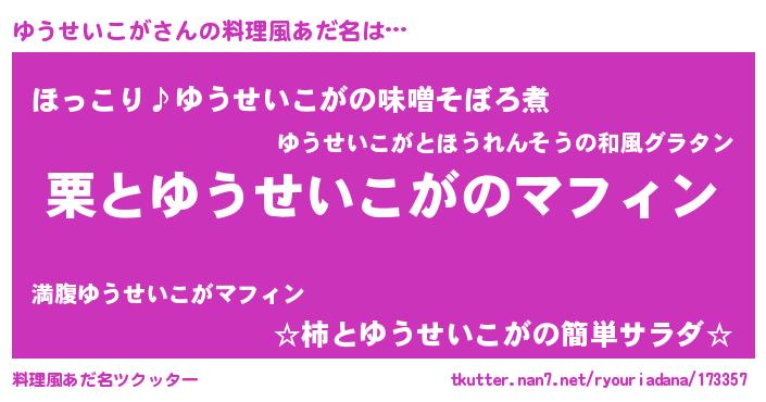 | 胡散臭い通販商品みたいなあだ名 | 『必ず成功するブレスレット…その名も「ゆうせいこが」』 |