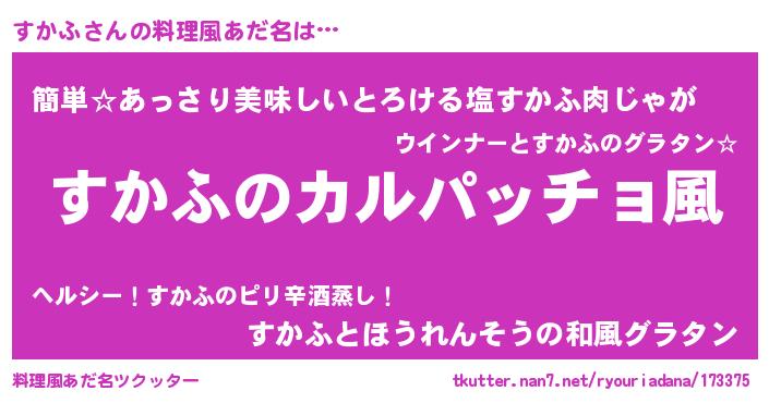 | 意味不明あだ名 | 『住所不定無職すかふ(98歳)』『自称すかふ』 |