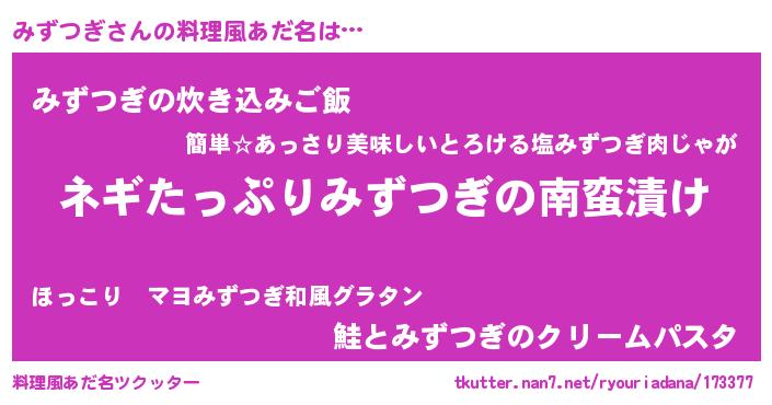 | 胡散臭い通販商品みたいなあだ名 | 『億万長者になれるブレスレット…その名も「みずつぎ」』 |