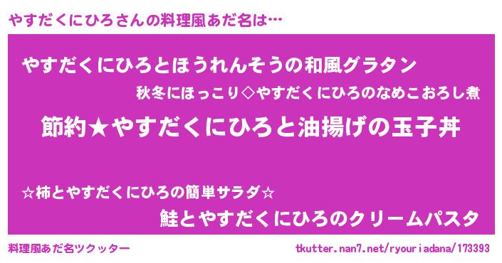 | ヘコむあだ名 | 『やすにゅー』『やすだくにひろ(笑)』 |