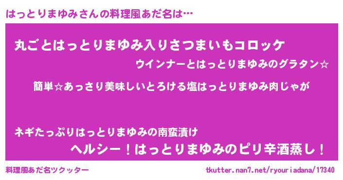 | 意味不明あだ名 | 『永久保存はっとりまゆみ』 |