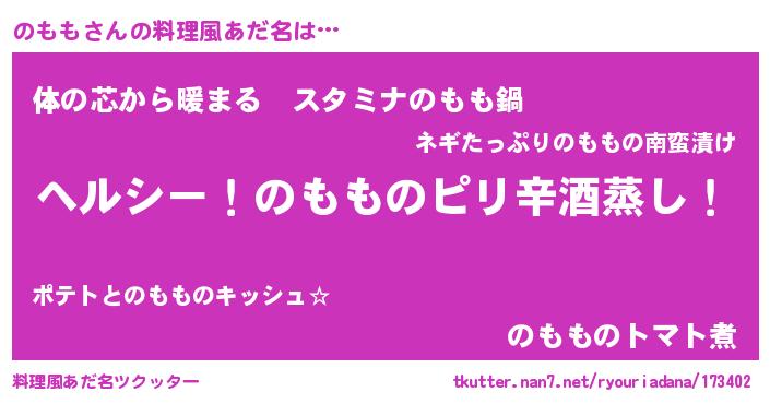 | 胡散臭い通販商品みたいなあだ名 | 『芸能人もオススメする高麗人参…その名も「のもも」』 |
