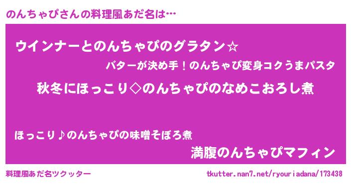 | ヘコむあだ名 | 『なまこ酢』『のんちゃぴ(苦笑)』 |