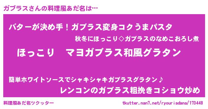 | 意味不明あだ名 | 『住所不定無職ガブラス(6歳)』 |