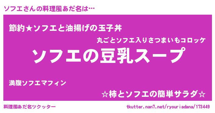 | 意味不明あだ名 | 『とにかく怪しいソフエ』 |
