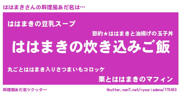 | 意味不明あだ名 | 『とにかく怪しいははまき』 |