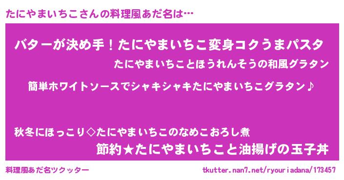| 男性向けラノベタイトル風あだ名 | 『たにやまいちこの嫁は女の子じゃないと思った?』 |