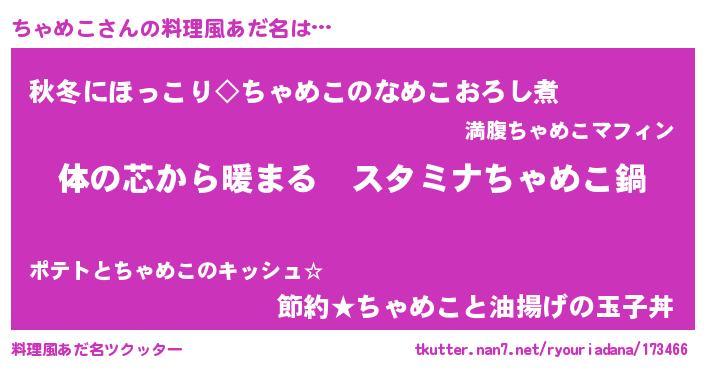 | ヒーロー風カッコイイあだ名 | 『ウルトラちゃめこマン』『ネオチャメコ』 |