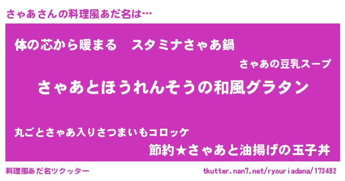 | 胡散臭い通販商品みたいなあだ名 | 『運命の人と巡り会える高級そうな皿…その名も「さゃあ」』 |