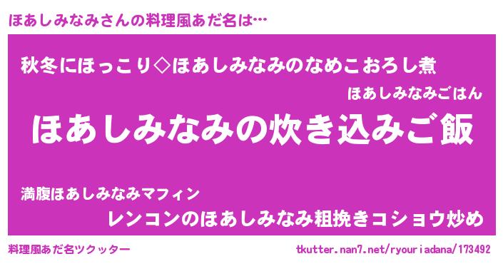 | 意味不明あだ名 | 『自称ほあしみなみ』 |