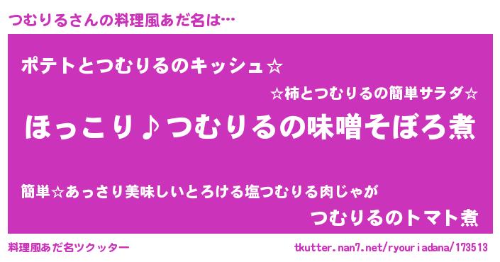 | 男性向けラノベタイトル風あだ名 | 『つむりるの憂鬱』『緋弾のツムリル』 |