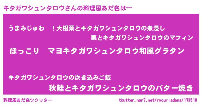 | 意味不明あだ名 | 『住所不定無職キタガワシュンタロウ(56歳)』 |