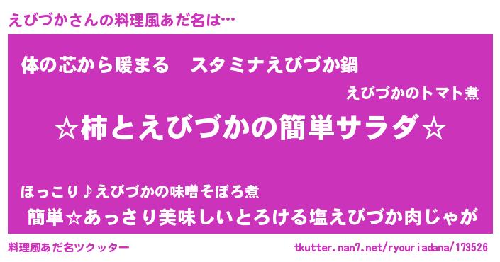 | 意味不明あだ名 | 『えびづかフォーエバー』 |