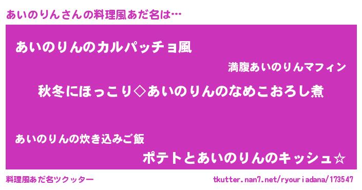 | 意味不明あだ名 | 『住所不定無職あいのりん(53歳)』 |