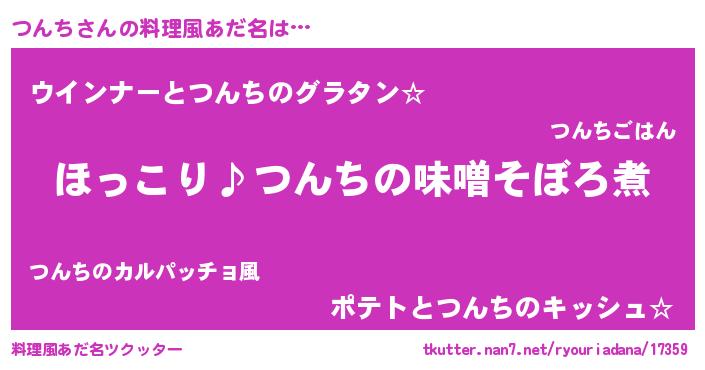| 男性向けラノベタイトル風あだ名 | 『つんちの憂鬱』『魔弾の王とつんち』 |