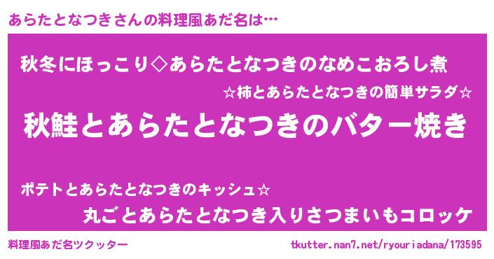 | 胡散臭い通販商品みたいなあだ名 | 『来世でも幸せになれる健康食品…その名も「あらたとなつき」』 |