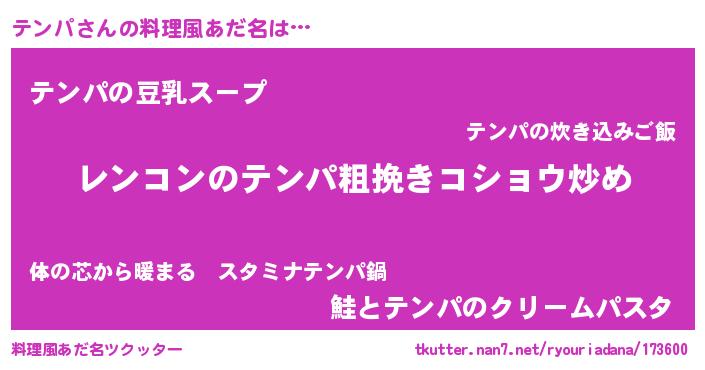 | ヒーロー風カッコイイあだ名 | 『超時空戦士テンパ』『幻影騎士テン』 |