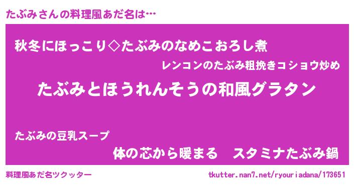 | 意味不明あだ名 | 『ヨモギ科たぶみ属』『自称たぶみ』 |