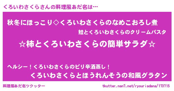 | 意味不明あだ名 | 『たけのこ科くろいわさくら属』 |