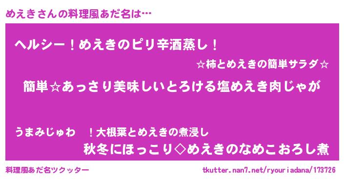 | 意味不明あだ名 | 『永久保存めえき』『自称めえき』 |