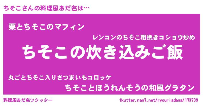| 意味不明あだ名 | 『なめこ科ちそこ属』『自称ちそこ』 |