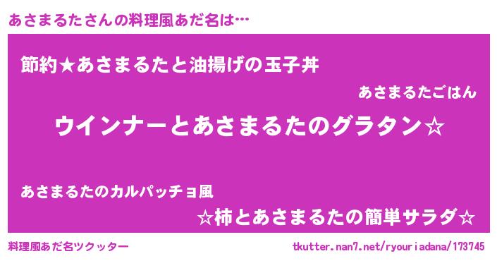 | 肩書あだ名 | 『あさまるた総理大臣』『あさまるた店長』 |