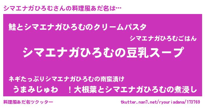 | ピコ太郎風あだ名 | 『シマ六郎』『シシ太郎』『ピシ太郎』 |