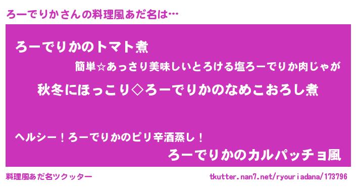 | 男性向けラノベタイトル風あだ名 | 『ろーでりかに滅ぼされるだけの簡単なお仕事です』 |