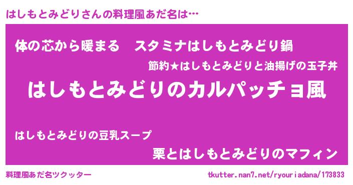 | 意味不明あだ名 | 『住所不定無職はしもとみどり(71歳)』 |
