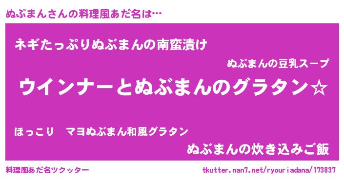 | 意味不明あだ名 | 『ぬぶまんフォーエバー』 |