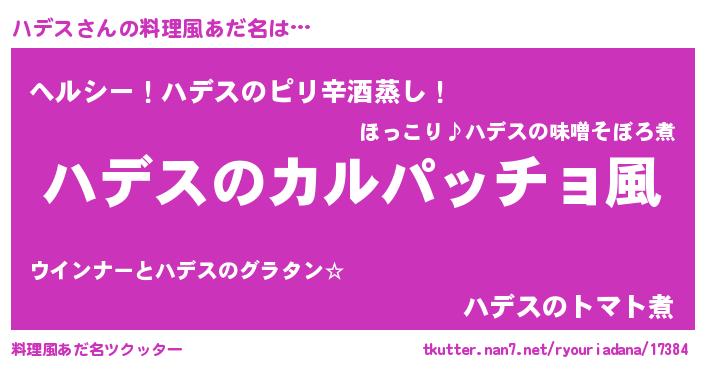 | ヒーロー風カッコイイあだ名 | 『仮面ハデダー』『最強戦士ハデス』 |