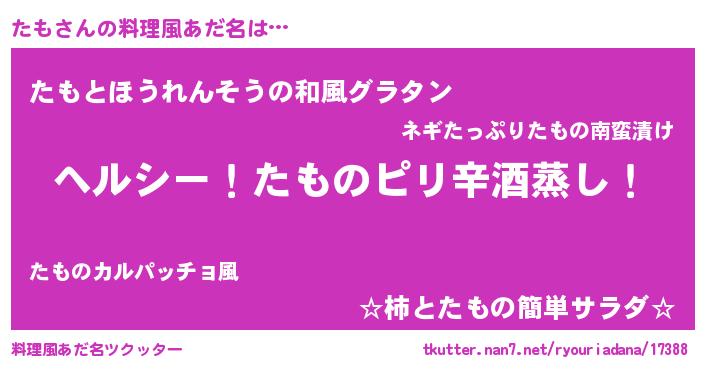 | ピコ太郎風あだ名 | 『タコ史郎』『ピタ八郎』『タタ太郎』 |