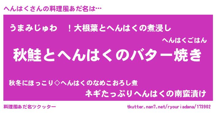 | 男性向けラノベタイトル風あだ名 | 『へんはくという概念が存在しない退屈な世界 』 |