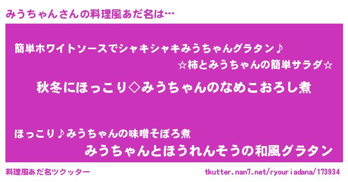 | ヘコむあだ名 | 『みうぷりん』『みうっふぃ~』 |