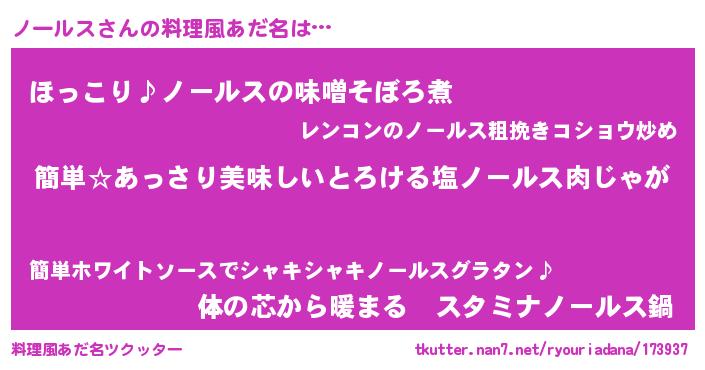| ファンタジー風あだ名 | 『ノーディッシュ』『ノーフェル』 |