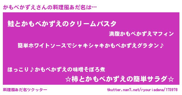 | 意味不明あだ名 | 『とにかく怪しいかもべかずえ』 |