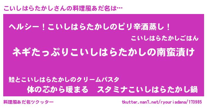 | ヒーロー風カッコイイあだ名 | 『スーパーコイシハラタカシ』 |