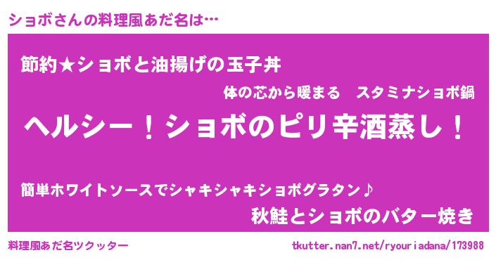 | 意味不明あだ名 | 『自称ショボ』『ペロリンショボ』 |