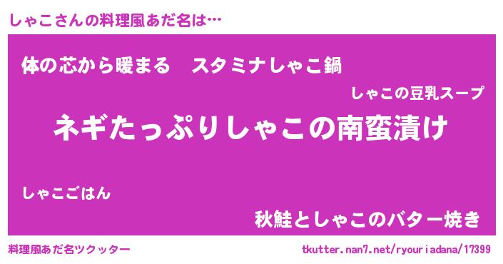 | ヘコむあだ名 | 『しゃにー』『なまこ酢』『しゃっぺ』 |