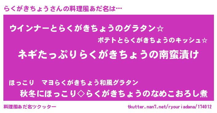 | ヘコむあだ名 | 『らくにー』『なまこ酢』 |