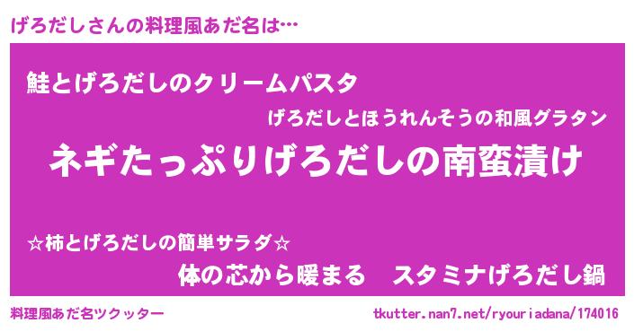 | ヒーロー風カッコイイあだ名 | 『スーパーゲロダシ』『幻影騎士ゲロ』 |