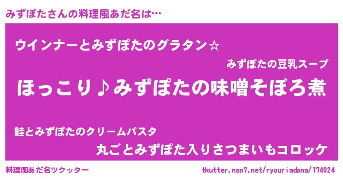 | ファンタジー風あだ名 | 『ミズフェル』『エターナルミズポター』 |