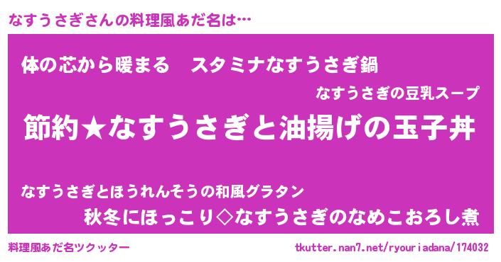 | ファンタジー風あだ名 | 『ナスフェル』『エターナルナスウサギー』 |