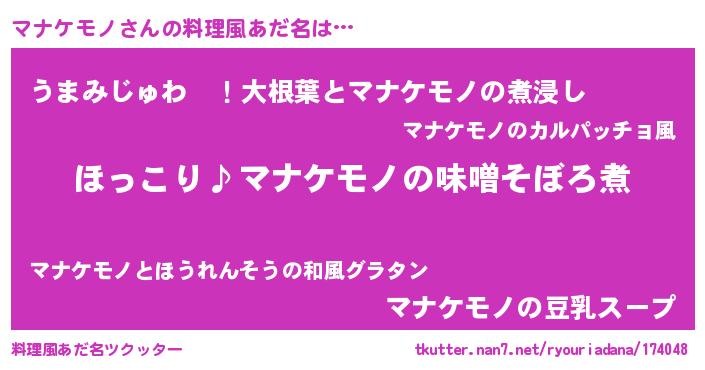 | ポケモン風あだ名 | 『マナチュウ』『マナケダネ』 |