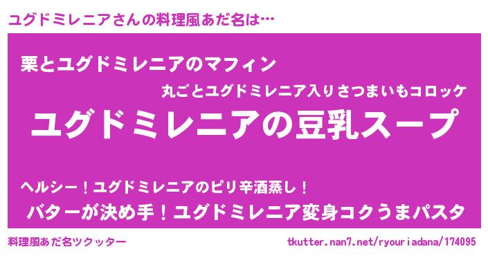 | ピコ太郎風あだ名 | 『ユグ八郎』『ユユ太郎』『ピコユ郎』 |
