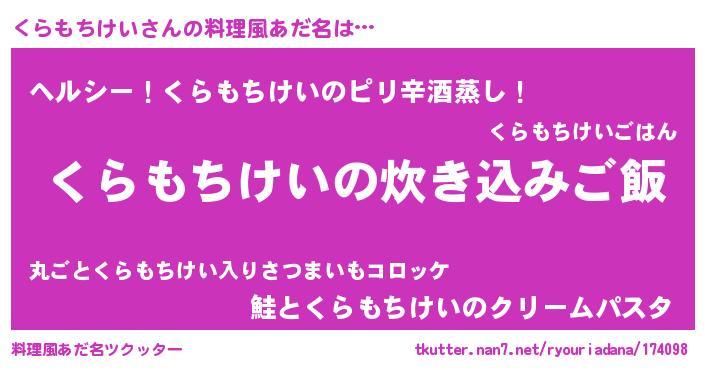 | 欧米人風あだ名 | 『くらもちけい・ステッグマイヤー』 |