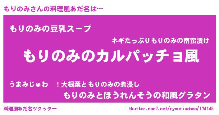 | ピコ太郎風あだ名 | 『モリ太郎』『モコ十郎』『ピモ史郎』 |