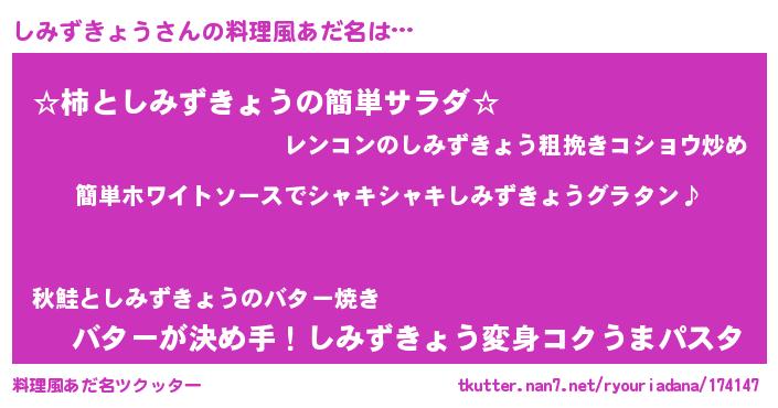 | 男性向けラノベタイトル風あだ名 | 『しみずきょうの嫁は女の子じゃないと思った?』 |