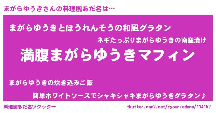 | ヘコむあだ名 | 『まがらゆうき(爆)』『まがお』 |